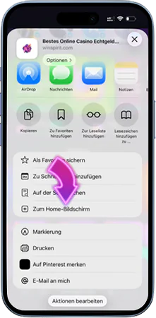Scrollen Sie nach unten und wählen Sie „Zum Startbildschirm hinzufügen”.
